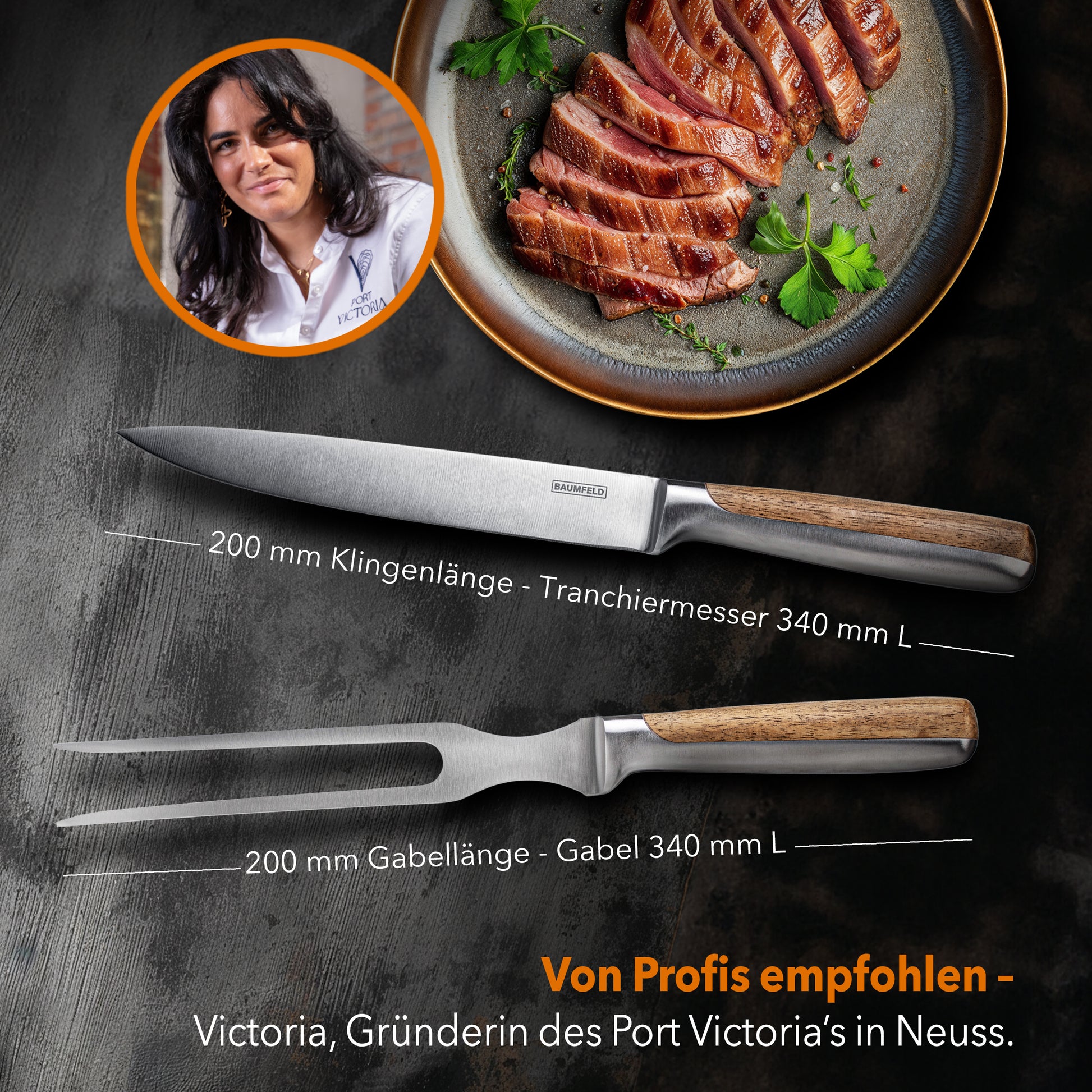 3. 2-TEILIGES TRANCHIERBESTECK: Das Set aus Tranchiermesser und Fleischgabel ist ideal für das präzise Schneiden von Fleisch, Fisch und Gemüse. Extrem scharfe Edelstahlklingen und ergonomische Griffe aus Akazienholz sorgen für müheloses Tranchieren.