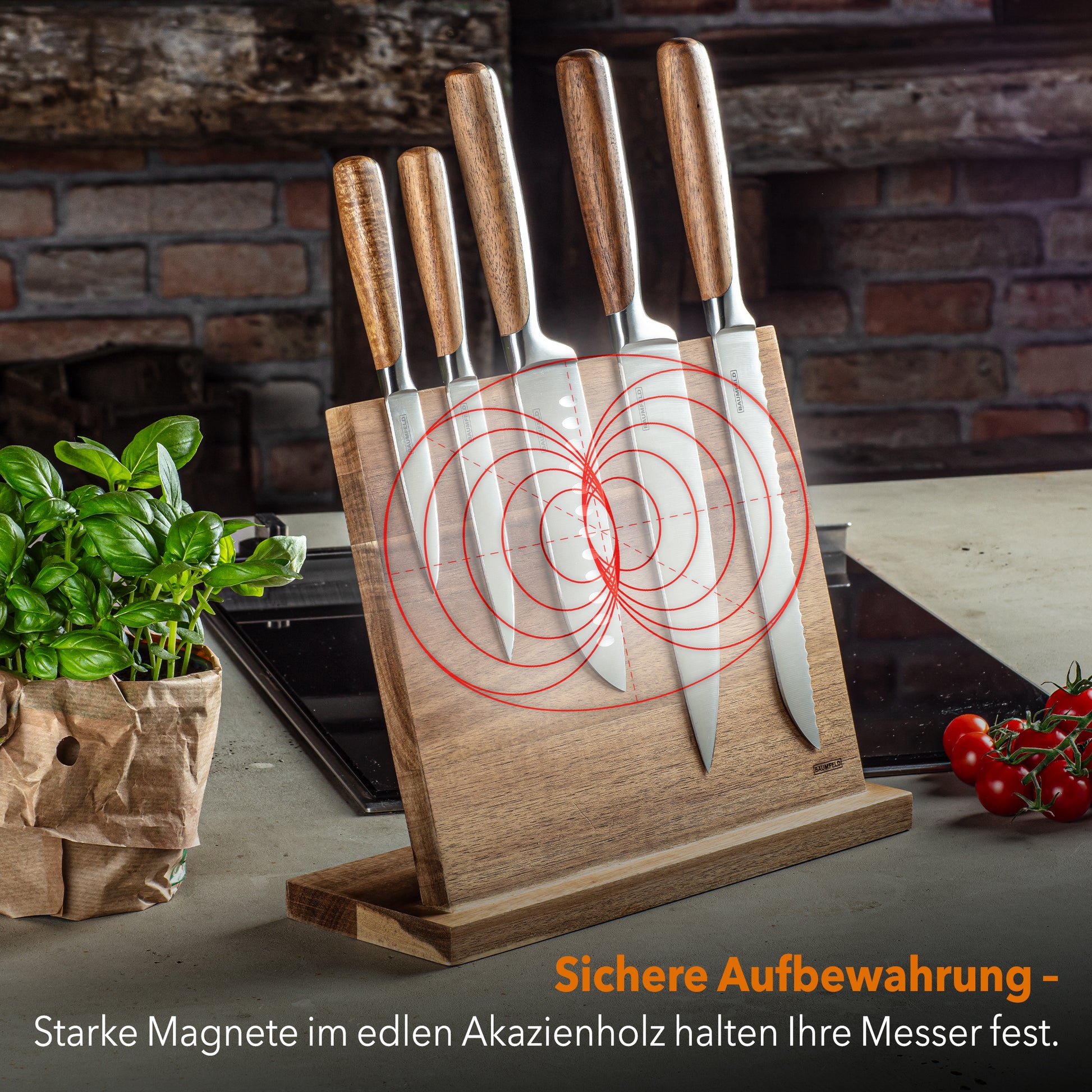 Messerblock: Einseitig magnetisch, aus Akazienholz